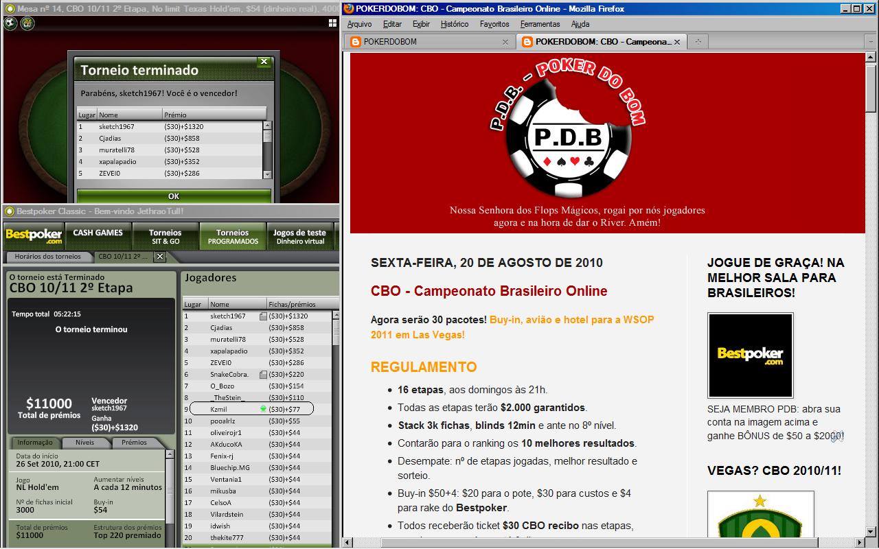 Valeu, semana que vem tem mais, com a nova estrutura: terças às 21h buy-in $3.30 com $50 adicionado no pote e quintas às 21h buy-in $5.50 com $100 adicionado no pote, não percam!